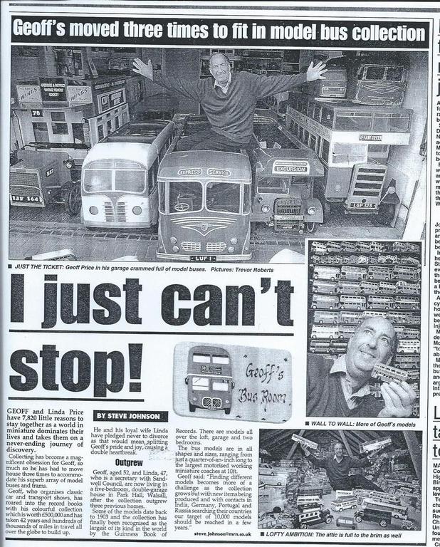 In September 2003 Geoff was given accreditation of being in the Guinness World Records Book 2004 edition for the largest model bus and tram collection in the world.