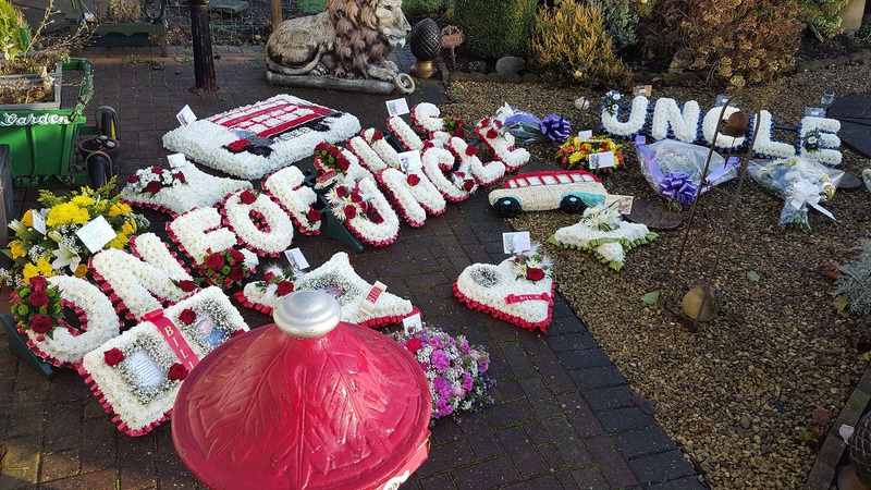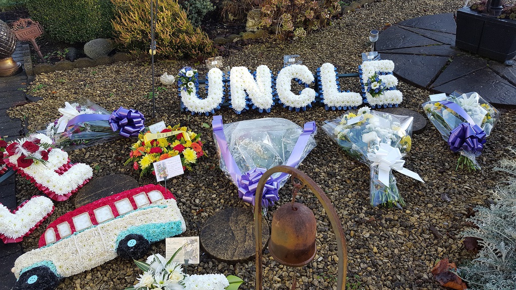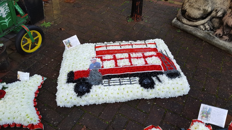 See below some pictures of the beautiful and appropriate floral tributes including both his Bedford OB and General Bus.